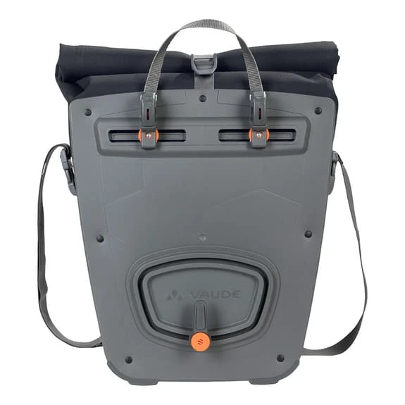 Le borse Vaude Aqua Back Deluxe (paio) sono perfette per la città . Il portaoggetti posteriore impermeabile con una stampa discreta si fabbrica nella sede centrale dell’azienda tedesca Vaude, vicino il lago di Constanza, con materiale resistente e senza PVC. Con una chiusura che permette di personalizzare la dimensione della borsa. Una tasca interna aggiunta agevola il lavoro del mantenimento degli oggetti in modo separato. La borsa è fissata in modo sicuro sul lato destro e sinistro della cerniera posteriore con il sistema QMR 2.0, che inoltre permette un facile e rapido adattamento. Con blocco bicicletta direttamente dal gancio di QMR. Gli elementi riflettenti garantiscono un alta visibilità nel traffico e in presenza di poca luce.