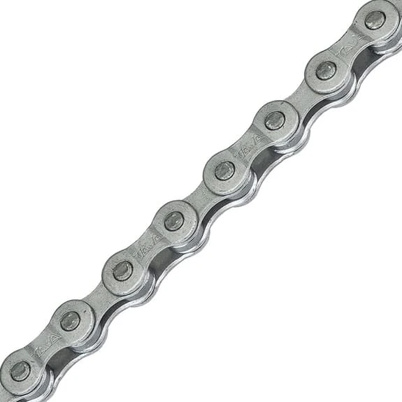 La catena Taya TB-50 7V 116 maglie ha un design a ponte sulla piastra esterna, che rende la catena scorrevole e accelera i cambi di marcia durante la guida.
