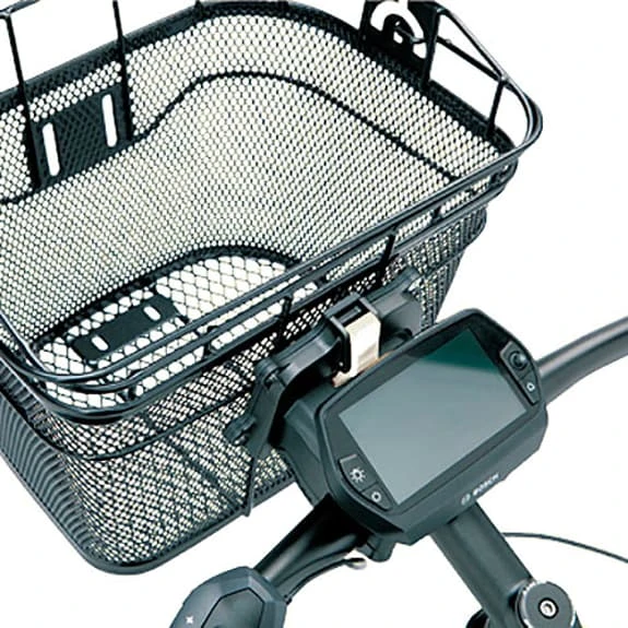 Il cestino anteriore Topeak Basket E-Bike è pensato per essere montato sulle biciclette elettriche attraverso il fissaggio QuickClick sul manubrio della bicicletta. È compatibile con i manubri da 25,4 a 31,8 mm di diametro e permette di trasportare comodamente un carico fino a 35 kg.
