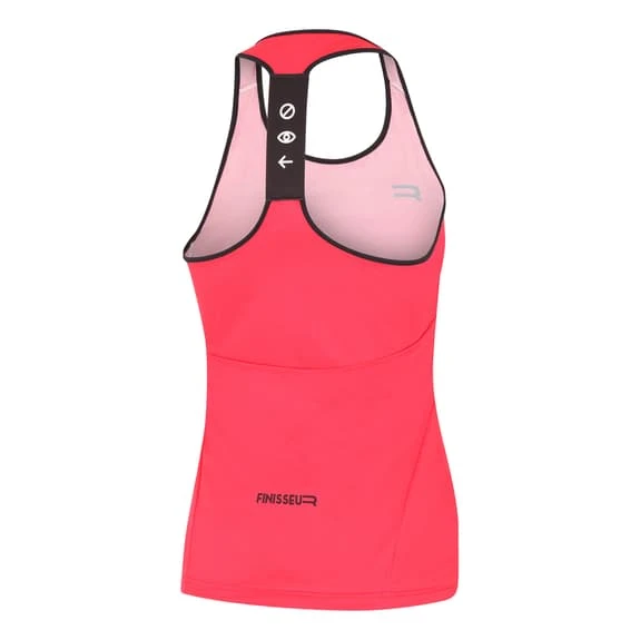 Lo smanicato Finisseur Core Indoor è un prodotto progettato specificamente per l’allenamento indoor, ma può essere indossato anche in una calda giornata estiva. Come il prodotto creato per la linea maschile, è stato progettato con una vestibilità non troppo aderente per evitare l’effetto ventosa creato dalla sudorazione intensa durante l’allenamento indoor. Utilizza tessuti altamente traspiranti e non ha tasche per evitare sovrapposizioni di tessuti che potrebbero compromettere la traspirabilità del capo. È costruito con tessuti tecnici altamente traspiranti per aumentare la capacità di allontanare il sudore e le spalle rimangono libere nella parte posteriore. Da utilizzare in perfetta combinazione con la salopette Finisseur Core Indoor e il reggiseno Finisseur Top Double.