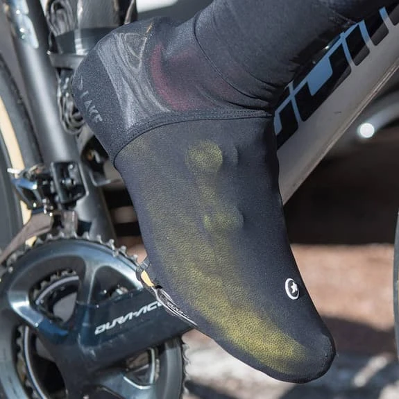 I corpiscarpe Assos Tiburubootie non dispongono ne di cerniera e ne sono fabbricati con tessuto Sens 2L.