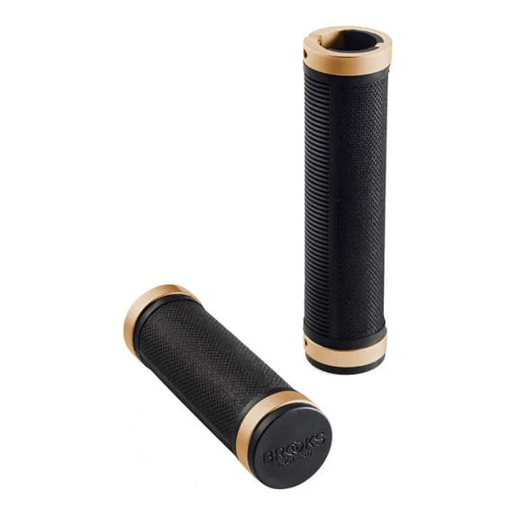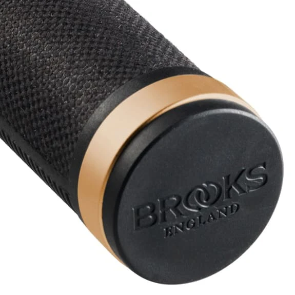 Le manopole Brooks England Cambium 100-100 mm sono realizzate in gomma e cotone organico vulcanizzato, per offrire una sensazione di morbidezza naturale.