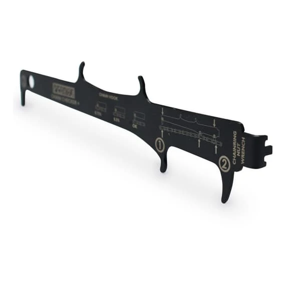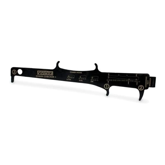 Il Pedro’s Chain Checker Plus II rende questo compito facile e veloce, offrendo un semplice controllo dello 0,5% e dello 0,75% di usura della catena. Per garantire la massima durata della catena e precisione di misura, l’utensile utilizza un design a tre punti che isola correttamente l’usura dei perni dall’usura dei rulli. Altri design con due punti non lo indicano, quindi possono indicare erroneamente l’usura di una catena e far percorrere all’utente ulteriori miglia.