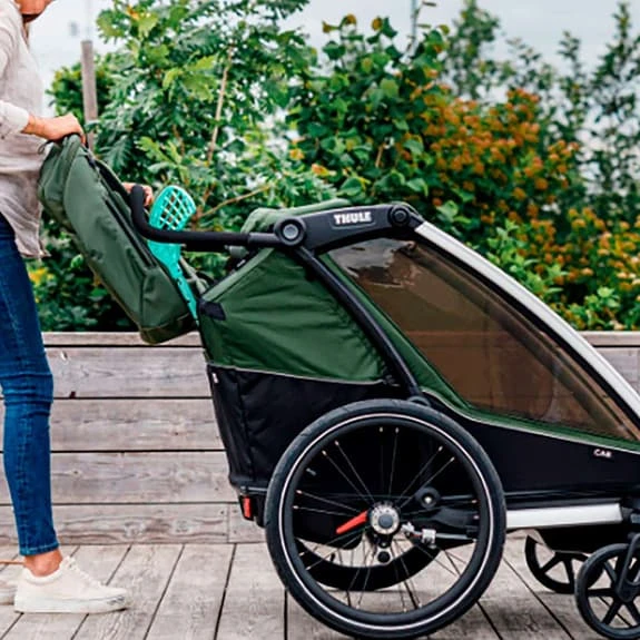 Il rimorchio Thule Chariot Cab 2 è pensato per far viaggiare i più piccoli con comodità e sicurezza.