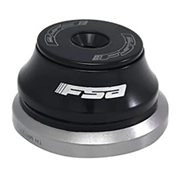 Serie sterzo FSA Orbit C-40 ACB 1.1/8-1.5 pensata per le biciclette con tubo di sterzo conico in tubi di testa Campagnolo, il C-40 ha un cuscinetto di contatto angolare Campagnolo nella parte superiore e una cartuccia saldata nella parte inferiore. Il piattello in acciaio inox la rende resistente e il tappo in lega riduce il peso.